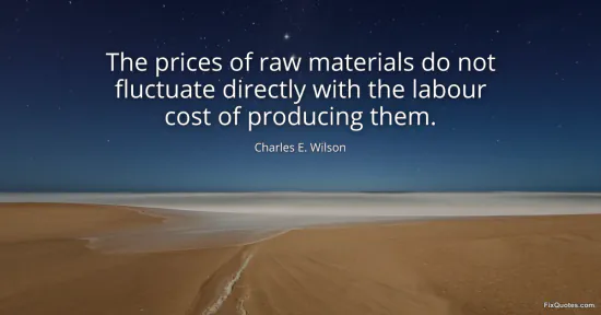 Wilson, Charles E. "The prices of raw materials do not fluctuate directly with the labour cost of producing them." FixQuotes. January 15, 2026. https://fixquotes.com/quotes/the-prices-of-raw-materials-do-not-fluctuate-139942/.