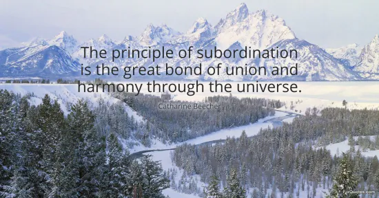 Beecher, Catharine. "The principle of subordination is the great bond of union and harmony through the universe." FixQuotes. January 15, 2026. https://fixquotes.com/quotes/the-principle-of-subordination-is-the-great-bond-87420/.