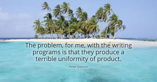 Davison, Peter. (2026, January 16). The problem, for me, with the writing programs is that they produce a terrible uniformity of product. FixQuotes. https://fixquotes.com/quotes/the-problem-for-me-with-the-writing-programs-is-134387/