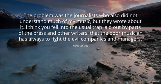 Schulze, Klaus. "The problem was the journalists who also did not understand much of my music, but they wrote about it. I think you fell into the usual trap laid out by parts of the press and other writers: that the poor musician has always to fight the evil companies and managers." FixQuotes. January 17, 2026. https://fixquotes.com/quotes/the-problem-was-the-journalists-who-also-did-not-81333/.