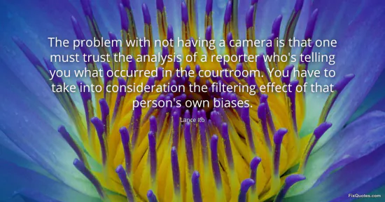 Ito, Lance. (2026, January 16). The problem with not having a camera is that one must trust the analysis of a reporter who's telling you what occurred in the courtroom. You have to take into consideration the filtering effect of that person's own biases. FixQuotes. https://fixquotes.com/quotes/the-problem-with-not-having-a-camera-is-that-one-92880/