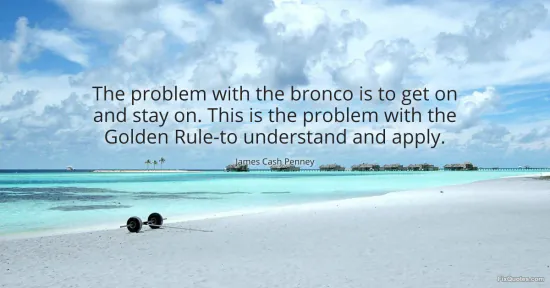 Penney, James Cash. "The problem with the bronco is to get on and stay on. This is the problem with the Golden Rule-to understand and apply." FixQuotes. January 17, 2026. https://fixquotes.com/quotes/the-problem-with-the-bronco-is-to-get-on-and-stay-51414/.