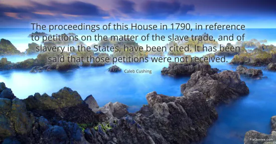 Cushing, Caleb. "The proceedings of this House in 1790, in reference to petitions on the matter of the slave trade, and of slavery in the States, have been cited. It has been said that those petitions were not received." FixQuotes. January 18, 2026. https://fixquotes.com/quotes/the-proceedings-of-this-house-in-1790-in-6036/.