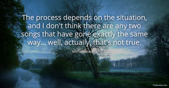 McKean, Michael. "The process depends on the situation, and I don't think there are any two songs that have gone exactly the same way... well, actually, that's not true." FixQuotes. January 17, 2026. https://fixquotes.com/quotes/the-process-depends-on-the-situation-and-i-dont-56811/.