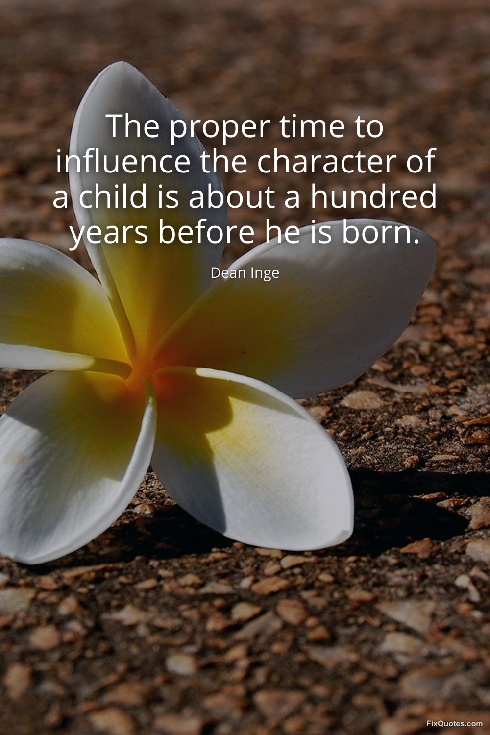 Inge, Dean. (2026, January 17). The proper time to influence the character of a child is about a hundred years before he is born. FixQuotes. https://fixquotes.com/quotes/the-proper-time-to-influence-the-character-of-a-50489/