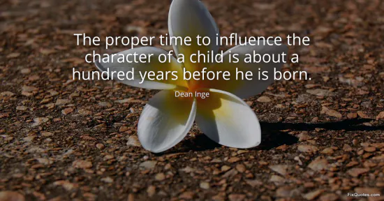 Inge, Dean. "The proper time to influence the character of a child is about a hundred years before he is born." FixQuotes. January 17, 2026. https://fixquotes.com/quotes/the-proper-time-to-influence-the-character-of-a-50489/.