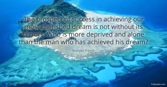 Francis, Brendan. (2026, January 17). The prospect of success in achieving our most cherished dream is not without its terrors. Who is more deprived and alone than the man who has achieved his dream? FixQuotes. https://fixquotes.com/quotes/the-prospect-of-success-in-achieving-our-most-48374/