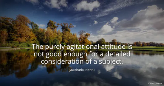 Nehru, Jawaharlal. (2026, January 17). The purely agitational attitude is not good enough for a detailed consideration of a subject. FixQuotes. https://fixquotes.com/quotes/the-purely-agitational-attitude-is-not-good-71954/