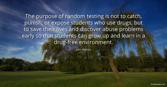 Walters, John. "The purpose of random testing is not to catch, punish, or expose students who use drugs, but to save their lives and discover abuse problems early so that students can grow up and learn in a drug-free environment." FixQuotes. January 18, 2026. https://fixquotes.com/quotes/the-purpose-of-random-testing-is-not-to-catch-19501/.