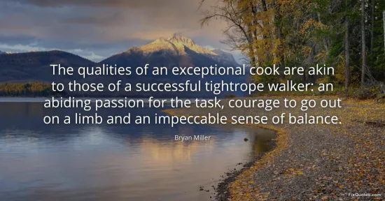 Miller, Bryan. "The qualities of an exceptional cook are akin to those of a successful tightrope walker: an abiding passion for the task, courage to go out on a limb and an impeccable sense of balance." FixQuotes. January 16, 2026. https://fixquotes.com/quotes/the-qualities-of-an-exceptional-cook-are-akin-to-109857/.