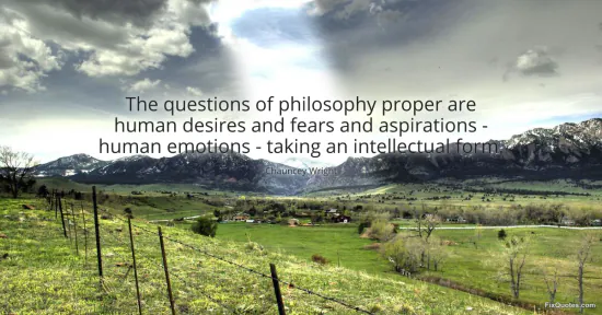 Wright, Chauncey. (2026, January 15). The questions of philosophy proper are human desires and fears and aspirations - human emotions - taking an intellectual form. FixQuotes. https://fixquotes.com/quotes/the-questions-of-philosophy-proper-are-human-139774/