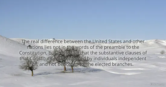 Greene, Harold H. (2026, February 18). The real difference between the United States and other nations lies not in the words of the preamble to the Constitution, but in the fact that the substantive clauses of that Constitution are enforced by individuals independent of, and not beholden to, the elected branches. FixQuotes. https://fixquotes.com/quotes/the-real-difference-between-the-united-states-and-68050/