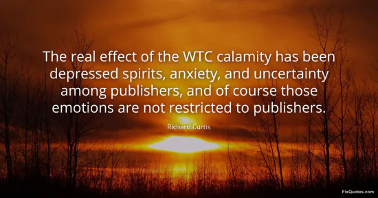 Curtis, Richard. (2026, January 15). The real effect of the WTC calamity has been depressed spirits, anxiety, and uncertainty among publishers, and of course those emotions are not restricted to publishers. FixQuotes. https://fixquotes.com/quotes/the-real-effect-of-the-wtc-calamity-has-been-147880/