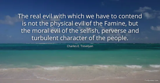 Trevelyan, Charles E. "The real evil with which we have to contend is not the physical evil of the Famine, but the moral evil of the selfish, perverse and turbulent character of the people." FixQuotes. February 7, 2026. https://fixquotes.com/quotes/the-real-evil-with-which-we-have-to-contend-is-140128/.