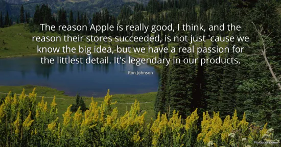 Johnson, Ron. "The reason Apple is really good, I think, and the reason their stores succeeded, is not just 'cause we know the big idea, but we have a real passion for the littlest detail. It's legendary in our products." FixQuotes. January 16, 2026. https://fixquotes.com/quotes/the-reason-apple-is-really-good-i-think-and-the-134620/.