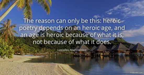 Abercrombie, Lascelles. "The reason can only be this: heroic poetry depends on an heroic age, and an age is heroic because of what it is, not because of what it does." FixQuotes. January 18, 2026. https://fixquotes.com/quotes/the-reason-can-only-be-this-heroic-poetry-depends-8496/.
