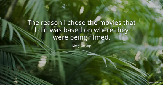 Streep, Meryl. "The reason I chose the movies that I did was based on where they were being filmed." FixQuotes. January 17, 2026. https://fixquotes.com/quotes/the-reason-i-chose-the-movies-that-i-did-was-33360/.