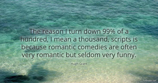 Grant, Hugh. (2026, January 15). The reason I turn down 99% of a hundred, I mean a thousand, scripts is because romantic comedies are often very romantic but seldom very funny. FixQuotes. https://fixquotes.com/quotes/the-reason-i-turn-down-99-of-a-hundred-i-mean-a-60580/