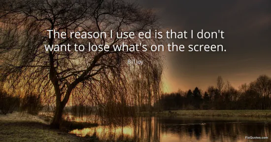 "The reason I use ed is that I don't want to lose what's on the screen." FixQuotes, 15 Jan. 2026, https://fixquotes.com/quotes/the-reason-i-use-ed-is-that-i-dont-want-to-lose-144567/. Accessed 1 Mar. 2026.