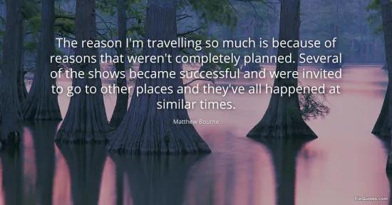 Bourne, Matthew. "The reason I'm travelling so much is because of reasons that weren't completely planned. Several of the shows became successful and were invited to go to other places and they've all happened at similar times." FixQuotes. January 16, 2026. https://fixquotes.com/quotes/the-reason-im-travelling-so-much-is-because-of-128039/.