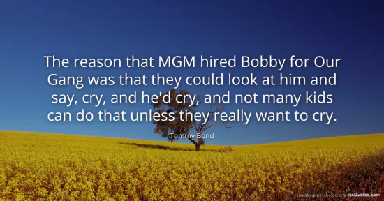 Bond, Tommy. "The reason that MGM hired Bobby for Our Gang was that they could look at him and say, cry, and he'd cry, and not many kids can do that unless they really want to cry." FixQuotes. January 17, 2026. https://fixquotes.com/quotes/the-reason-that-mgm-hired-bobby-for-our-gang-was-72438/.
