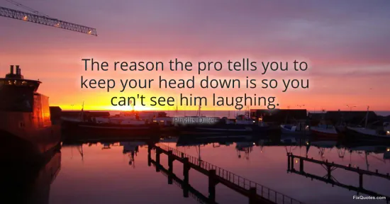 Diller, Phyllis. "The reason the pro tells you to keep your head down is so you can't see him laughing." FixQuotes. January 18, 2026. https://fixquotes.com/quotes/the-reason-the-pro-tells-you-to-keep-your-head-9501/.