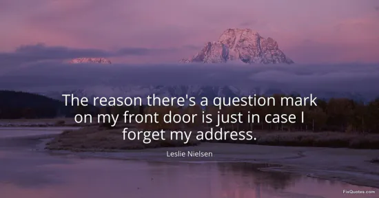 Nielsen, Leslie. (2026, January 17). The reason there's a question mark on my front door is just in case I forget my address. FixQuotes. https://fixquotes.com/quotes/the-reason-theres-a-question-mark-on-my-front-75885/
