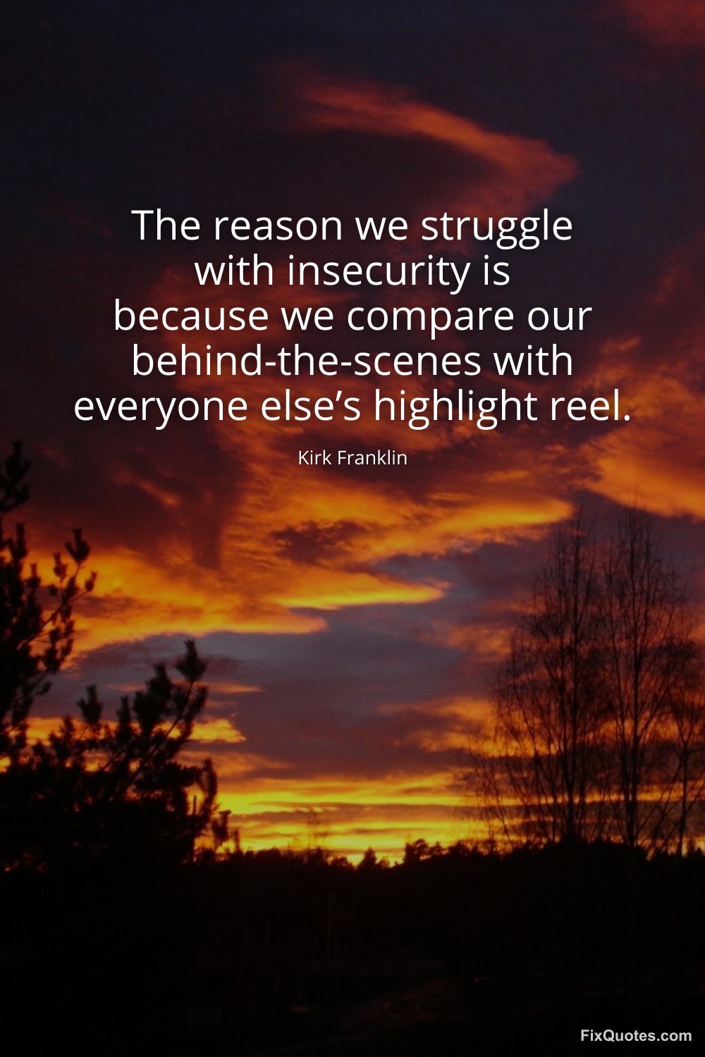 Franklin, Kirk. (2026, January 30). The reason we struggle with insecurity is because we compare our behind-the-scenes with everyone else’s highlight reel. FixQuotes. https://fixquotes.com/quotes/the-reason-we-struggle-with-insecurity-is-because-184826/