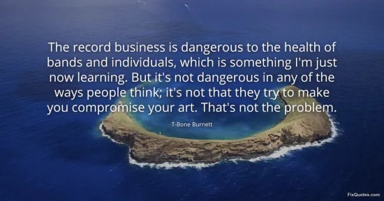 Burnett, T-Bone. "The record business is dangerous to the health of bands and individuals, which is something I'm just now learning. But it's not dangerous in any of the ways people think; it's not that they try to make you compromise your art. That's not the problem." FixQuotes. January 16, 2026. https://fixquotes.com/quotes/the-record-business-is-dangerous-to-the-health-of-84590/.