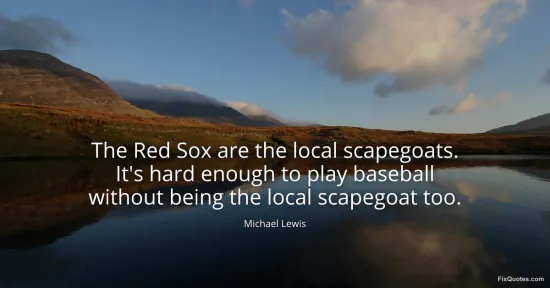 Lewis, Michael. "The Red Sox are the local scapegoats. It's hard enough to play baseball without being the local scapegoat too." FixQuotes. January 16, 2026. https://fixquotes.com/quotes/the-red-sox-are-the-local-scapegoats-its-hard-88993/.