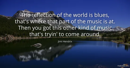 Hendrix, Jimi. "The reflection of the world is blues, that's where that part of the music is at. Then you got this other kind of music that's tryin' to come around." FixQuotes. January 17, 2026. https://fixquotes.com/quotes/the-reflection-of-the-world-is-blues-thats-where-71967/.