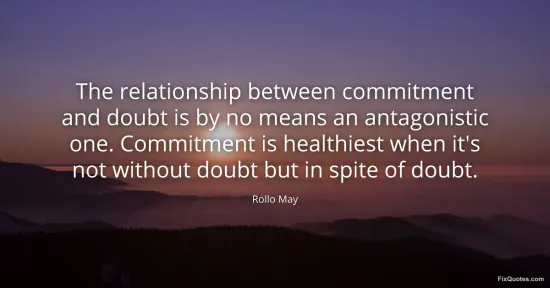 May refuses the self-help fantasy that commitment is a sterilized state: pure, untroubled, and certain. He’s writing as an existential psychologist, in a century that watched ideologies demand obedience and call it virtue. Against that backdrop, “doubt” isn’t a bug in the system; it’s the human signal that you’re awake to complexity, consequence, and the limits of your knowledge. The line is crafted to rehabilitate doubt from moral weakness into psychological hygiene.