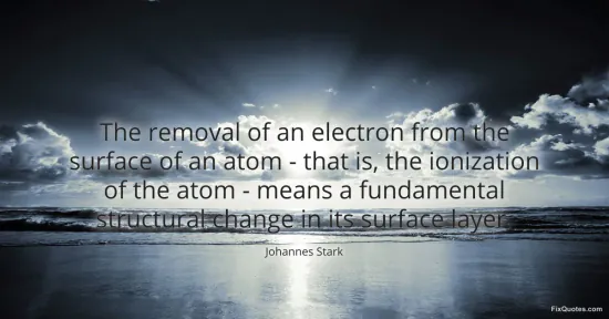 Stark, Johannes. (2026, January 15). The removal of an electron from the surface of an atom - that is, the ionization of the atom - means a fundamental structural change in its surface layer. FixQuotes. https://fixquotes.com/quotes/the-removal-of-an-electron-from-the-surface-of-an-62540/