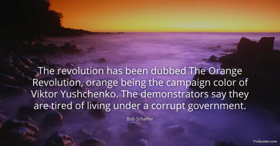 Schaffer, Bob. "The revolution has been dubbed The Orange Revolution, orange being the campaign color of Viktor Yushchenko. The demonstrators say they are tired of living under a corrupt government." FixQuotes. January 17, 2026. https://fixquotes.com/quotes/the-revolution-has-been-dubbed-the-orange-37813/.