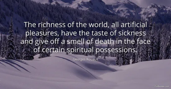 Rouault, Georges. "The richness of the world, all artificial pleasures, have the taste of sickness and give off a smell of death in the face of certain spiritual possessions." FixQuotes. January 17, 2026. https://fixquotes.com/quotes/the-richness-of-the-world-all-artificial-52958/.