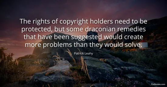 "The rights of copyright holders need to be protected, but some draconian remedies that have been suggested would create more problems than they would solve." FixQuotes, 16 Jan. 2026, https://fixquotes.com/quotes/the-rights-of-copyright-holders-need-to-be-84386/. Accessed 13 Feb. 2026.