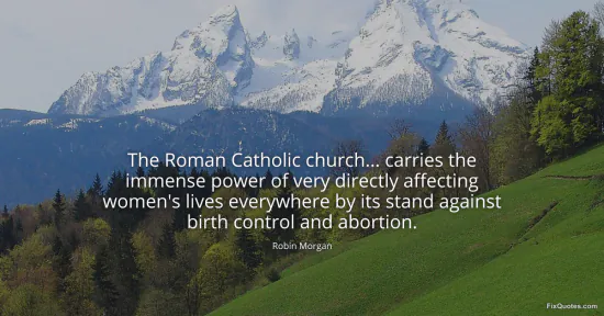 Morgan, Robin. (2026, January 16). The Roman Catholic church... carries the immense power of very directly affecting women's lives everywhere by its stand against birth control and abortion. FixQuotes. https://fixquotes.com/quotes/the-roman-catholic-church-carries-the-immense-118036/