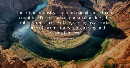 Shinawatra, Thaksin. "The rubber industry is of much significance to our countries. For millions of our smallholders, the rubber tree is a tree of life, serving as a crucial source of income for earning a living and raising families." FixQuotes. January 16, 2026. https://fixquotes.com/quotes/the-rubber-industry-is-of-much-significance-to-90416/.