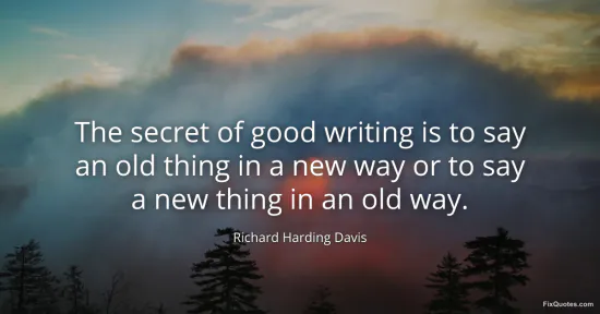 Davis, Richard Harding. "The secret of good writing is to say an old thing in a new way or to say a new thing in an old way." FixQuotes. January 16, 2026. https://fixquotes.com/quotes/the-secret-of-good-writing-is-to-say-an-old-thing-134531/.