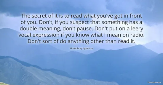 Lyttelton, Humphrey. "The secret of it is to read what you've got in front of you. Don't, if you suspect that something has a double meaning, don't pause. Don't put on a leery vocal expression if you know what I mean on radio. Don't sort of do anything other than read it." FixQuotes. January 16, 2026. https://fixquotes.com/quotes/the-secret-of-it-is-to-read-what-youve-got-in-125347/.