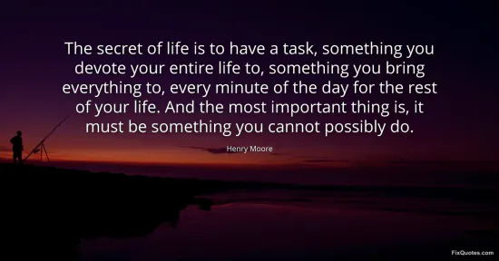Moore, Henry. (2026, January 17). The secret of life is to have a task, something you devote your entire life to, something you bring everything to, every minute of the day for the rest of your life. And the most important thing is, it must be something you cannot possibly do. FixQuotes. https://fixquotes.com/quotes/the-secret-of-life-is-to-have-a-task-something-61804/