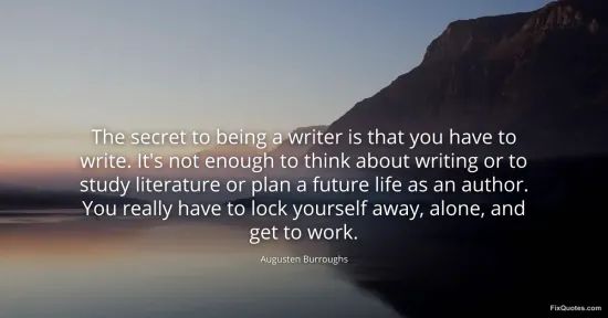 Burroughs, Augusten. "The secret to being a writer is that you have to write. It's not enough to think about writing or to study literature or plan a future life as an author. You really have to lock yourself away, alone, and get to work." FixQuotes. January 17, 2026. https://fixquotes.com/quotes/the-secret-to-being-a-writer-is-that-you-have-to-64065/.