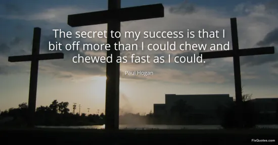 Hogan, Paul. (2026, January 16). The secret to my success is that I bit off more than I could chew and chewed as fast as I could. FixQuotes. https://fixquotes.com/quotes/the-secret-to-my-success-is-that-i-bit-off-more-128598/