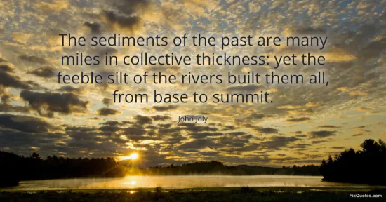 Joly, John. "The sediments of the past are many miles in collective thickness: yet the feeble silt of the rivers built them all, from base to summit." FixQuotes. February 19, 2026. https://fixquotes.com/quotes/the-sediments-of-the-past-are-many-miles-in-56592/.