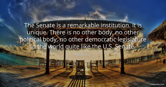 Baucus, Max. (2026, January 16). The Senate is a remarkable institution. It is unique. There is no other body, no other political body, no other democratic legislature in the world quite like the U.S. Senate. FixQuotes. https://fixquotes.com/quotes/the-senate-is-a-remarkable-institution-it-is-89462/