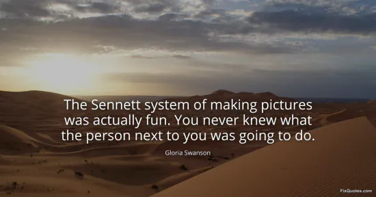 Swanson, Gloria. "The Sennett system of making pictures was actually fun. You never knew what the person next to you was going to do." FixQuotes. January 17, 2026. https://fixquotes.com/quotes/the-sennett-system-of-making-pictures-was-70987/.