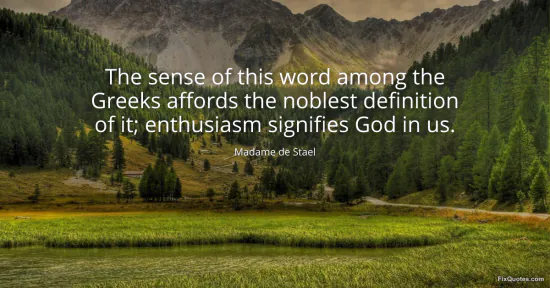 Stael, Madame de. (2026, January 18). The sense of this word among the Greeks affords the noblest definition of it; enthusiasm signifies God in us. FixQuotes. https://fixquotes.com/quotes/the-sense-of-this-word-among-the-greeks-affords-13148/