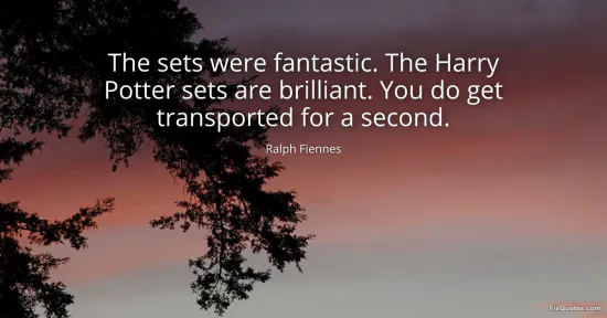 Fiennes, Ralph. "The sets were fantastic. The Harry Potter sets are brilliant. You do get transported for a second." FixQuotes. January 16, 2026. https://fixquotes.com/quotes/the-sets-were-fantastic-the-harry-potter-sets-are-106534/.