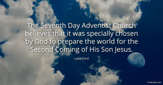 Ford, Luke. "The Seventh Day Adventist Church believes that it was specially chosen by God to prepare the world for the Second Coming of His Son Jesus." FixQuotes. January 17, 2026. https://fixquotes.com/quotes/the-seventh-day-adventist-church-believes-that-it-55980/.
