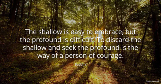 Buddha. (2026, March 10). The shallow is easy to embrace, but the profound is difficult. To discard the shallow and seek the profound is the way of a person of courage. FixQuotes. https://fixquotes.com/quotes/the-shallow-is-easy-to-embrace-but-the-profound-185950/